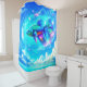 Dieser Duschvorhang hat einen Fisch, der darauf abgebildet ist.