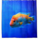 Dieser Duschvorhang hat einen Fisch, der darauf abgebildet ist.