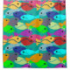 Dieser Duschvorhang hat ein Design einer Fischschule in Grün, Blau, Orange, Gelb, Rot, Rosa und Blau-Grün im Ozean.