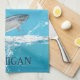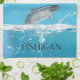 Große Lachse springen aus dem Wasser mit "FISHIGAN" Text.