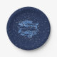 Pappteller, der das Symbol für Fische im weichen silbernen Blau, bedeckt mit den Sternen der Konstellation, gegen einen sternenklaren Himmelhintergrund im tiefen Mitternachtsblau kennzeichnet