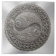Quadratische Keramikfliese mit einem Bild von Zinn Fisch-Medaillon auf glänzendem Silber. Die Augen der Fische sind blauer Topaz. See zusammenpassende Melaminplatte und runder Sandstein-Untersetzer. Sehen Sie die gesamte Edelstein-u. Medaillon-Fliesensammlung im ZUHAUSE-Abschnitt.