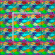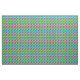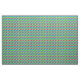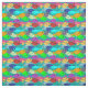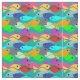 Dieser Stoff hat ein Design einer Fischschule in Grün, Blau, Orange, Gelb, Rot, Rosa und Blau-Grün Schwimmen im Ozean.