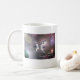 Dieser Entwurf ist das Symbol für das Tierkreiszeichen Fische auf einem Galaxiehintergrund.