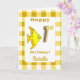 Ein lustiges gelbes Gingham-Muster mit einem Gelben Fisch-Cartoon und einem goldenen Ballon Nummer 1. Wenn Sie eine andere Ballonnummer wünschen. Bitte schreiben Sie eine Nachricht in der Chat Box auf Zazzle.