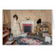 Elegante antike Miniaturfischcremesuppenpuppen beachten ihre Babys in dieser entzückenden Schlafzimmereinstellung. Das Innere dieser Karte ist leer.