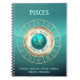 Fertigen Sie dieses Astrologie-themenorientierte Notizbuch als Geschenk für jemand besonders an, das zwischen dem 20. Februar geboren sind und dem 20. März! Ihr Geburtszeichen ist Fische oder der Fisch, das Letzte des Tierkreises, angeordnet durch Planeten Neptun. Ihre glückliche Farbe und Metall sind Türkis und Platin. Dieses Ausrüstungsbeschreibungen ein blaues Disc mit metallischer Grenze und dem der Fische Glyph in der Mitte umgaben durch alle Symbole des Tierkreises