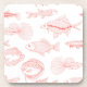 Hand - gezeichnet Vektormuster mit verschiedenen Fischen in Living Coral Farbe und weißem Hintergrund.