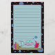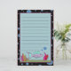 Ein niedlicher Volkskunstentwurf, der einen Fisch mit bunter Umgebung und einem Leitungsabschnitt für Korrespondenz kennzeichnet. Hat auch eine betonte Grenze der Luftblase. Verfügbar in der unlinierten und schlichten Grenzversion auch.