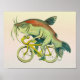 Fische reiten mit dem Fahrrad Warme Hintergrund Poster