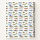 Ein Muster mit verschiedenen Arten von Fischen und Ködern. Dort finden Sie: