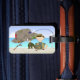 Stehen Sie heraus im Gepäckkarussell mit einem Fischen-Gepäckanhänger, der einen Strandhintergrund, einen Fischenhut mit Fischenködern, eine Angelrute, clipart des Mannes mit Fischen und Spinnerkasten kennzeichnet. Text wird für Ihren Namen, Adressen- und Telefonzahl oder jeder möglicher Text gegründet, die Sie wollen. Perfektes Geschenk für Fischer in Ihrem Leben! Lederner Gepäckbügel eingeschlossen.