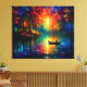 Genießen Sie eine visuelle Reise mit unserer malerischen Fischerszene - ein faszinierendes Tafelau mit Farben und Ruhe. Ein robustes Fischerboot gleitet sanft über das Wasser, Set vor einem Hintergrund von bunten Bäumen, die den lebhaften Wandteppich des Herbstes widerspiegeln. Der Himmel über der Insel ist mit einer atemberaubenden Anzeige von Sonnenuntergang oder Sonnenaufgang, die warme Farbtöne auf die Landschaft ausstrahlt, verblasst. Im Boot wird ein Alleinmann, vielleicht ein Angler oder ein Kenner der Schönheit der Natur, Teil dieser harmonischen Szene. Die gesamte Komposition ist eine Feier der abwechslungsreichen und lebendigen Farben der Natur und der menschlichen Verbindung und lädt Sie ein, sich in die ruhige Magie dieses lebendigen, bunten Moments einzutauchen.
