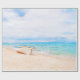 Die faszinierende Aquarellfarbe eines Fischerbootes auf einem Sandstrand mit blauem Wasser und sonniger Sommerhimmel.