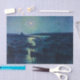 Dieses Design zeigt ein Gemälde des französischen neoimpressionistischen Künstlers Maximilien Luce (1858-1941). Es zeigt einen Yachthafen in einem französischen Fischerdorf mit vielen Booten, die im Hafen festgemacht sind. Das Mondlicht scheint auf dem Wasser, und der Mond ist hell am Himmel zu sehen. Die Lage ist Camaret-sur-Mer, im Departement Finistère im Nordwesten Frankreichs. Das Originalgemälde wurde 1894 hergestellt.