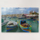 Fischerboote Maltas. Jigsaws. Diese Jigsaws sind aus robustem Karton gefertigt und auf Chipboard montiert. Diese Rätsel sind in lebhafter und voller Farbe bedruckt. Verschenke gleich heute mit einem individuell gestalteten Puzzle stundenlangen Genuss! Größe: 11" x 14" (252 Stück). Das Puzzle kommt in einer wunderschönen Geschenkbox, mit auf dem Deckel aufgedrucktem Motiv. Beständiges Kartonpapier, auf Graupappe angebracht. Einfach abwischbare Oberfläche.