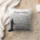 Lasst uns davon wegkommen und angeln gehen! Einfache Anpassung oder Entfernung des Textes auf diesem Kopfkissen, das ein Schwarz-Weiß-Bild eines einsamen Fischers zeigt, der auf einem Felsvorsprung am Seneca See in Genf, New York stehend ist. Der Text lautet: Gone fisin'