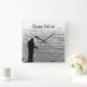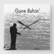 Gelassen uns erhalten Sie weg von ihm aller und gehen Sie zu fischen! Leicht fertigen Sie besonders an oder entfernen Sie den Text auf dieser Wanduhr, die ein Schwarzweiss-Bild eines alleinen Fischers kennzeichnet, der auf einer Felsenleiste in Seneca See in Genf, New York stehend ist. Der Text liest: Gegangenes fishin
