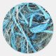 Ein farbenfroher Entwurf des Fischernetzes und leuchtend blaues Seil aus einem Boot, das auf dem Hafensteg gelagert ist.