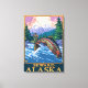 Fly Fishing Scene - Seward, Alaska - Vintage Travel Poster wurde 2007 gegründet. Dieses Bild zeigt Szenen aus Seward, AK.