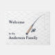 Eine Tür zum Angeln. Dieses Motiv zeigt eine Angelstange und ein Angelnetz. Und natürlich eine willkommene Botschaft. Bitte geben Sie Ihren Familiennamen an und informieren Sie diskret die Nachbarn über Ihr Hobby. Angeln!