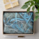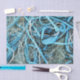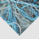 Ein farbenfroher Entwurf des Fischernetzes und leuchtend blaues Seil aus einem Boot, das auf dem Hafensteg gelagert ist.