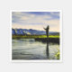 Angeln auf einem Bergsee an einem schönen sonnigen Tag mit schneebedeckten Bergen im Hintergrund. Die Natur ist schön. Sie können dies anpassen und personalisieren, indem Sie Ihren eigenen Text, Pome oder Song-Texte in den Himmel hinzufügen. Ändern Sie Größe, Farbe und Stil des Schriftartes.