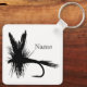 Schwarze Silhouette einer Fliegenfliege, um sich mit Ihrem eigenen Gruß, Namen, Nachricht usw. anzupassen