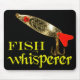 Ein lustiges Angelmousepad für alle Fischer und Fischer. Fisch Whisperer in Text mit einer vollen Farbe Angellocke in der Nähe der oberen.