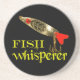 Ein Untersetzer für alle Fischer und Fischer. Fisch Whisperer in Text mit einer vollen Farbe Angellocke in der Nähe der oberen.