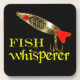 Ein Untersetzer für alle Fischer und Fischer. Fisch Whisperer in Text mit einer vollen Farbe Angellocke in der Nähe der oberen.