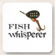 Ein Untersetzer für alle Fischer und Fischer. Fisch Whisperer in Text mit einer vollen Farbe Angellocke in der Nähe der oberen.