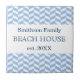 Dieser hübsche, personalisierte Strandhaus-Keramikfliesenentwurf hat ein leicht strukturiertes blau-und-weißes Fischgrätenmustermuster. Fügen Sie leicht Ihre persönlichen Details den Vorlagen hinzu. Sie können "Strandhaus" "zum Sommer-Zuhause sogar ändern," "Seehaus" oder irgendeine andere Benennung, die Sie möchten. Dieser moderne, elegante Entwurf ist perfekt, Ihr Küsten-/Ozean/Seethema-Wohngestaltung zusammenzubringen.