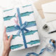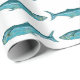 Fische Musterverpackungspapier gedruckt mit farbiger Ölpastellbild eines Makrelen auf weißem Hintergrund. Artwork: Ölpadel an Bord. ©2014 Dominic A. White.