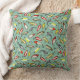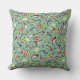 Dieses Quadratwurfkissen hat fantasievolle Illustrationen, inspiriert von Vintagen Fischköpfen in Rot- und Gelbtönen auf einem blassfarbenen aquamarinen Hintergrund.