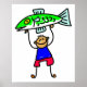 Niedlicher Cartoon skurrile Darstellung eines glücklichen kleinen Strichmännchens, der den großen Fisch, den er beim Angeln gefangen hat, aufhält. Einfach anpassen und Ihre eigene Hintergrundfarbe auswählen oder Text hinzufügen. Bilder auf verschiedenen Geschenken und Produkten erhältlich.