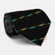 Einzigartiges Krawatte-Muster mit Fischen in Neon glitzernden Farben, grün und gelb über kontrastierendem schwarzen Hintergrund. Es macht eine Aussage, wie anders, einzigartig und ein wenig seltsam, aber unbestreitbar stilvolle schwarze Krawatte.