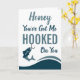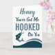 Reel in the love with this funny Hooked on You greeting card for your significant other. Perfect for fishing enthusiasts, this card adds a fun touch to his or her special day. Personalize it with a name or your own fishy message for a unique keepsake. Great for Valentine's day, a wedding anniversary, or just because. Ideal for a boyfriend / husband or a girlfriend / wife who loves to bait some hooks and catch some fish.