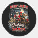 Santa and a cheerful angler share laughs on a snowy dock, reeling in holiday joy beneath a glowing winter moon.