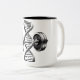 Erfolg beginnt von innen heraus. Dieser stilvolle zweifarbige Becher zeigt eine kraftvolle DNA-Helix, die mit schweren Hanteln verschmolzen ist und symbolisiert, dass der Antrieb zum Training tief in dir verwurzelt ist. Perfekt für deinen morgendlichen Kaffee oder als Kraftstoff vor dem Training, ist er eine ständige Erinnerung an deine Hingabe an das harte Training. Entwickelt für Gewichtheber, Bodybuilder und Fitness-Enthusiasten, die wissen, dass Stärke ein Teil ihrer Identität ist. Wach auf, tanke auf und nutze dein genetisches Potenzial.