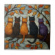Five Cats on a Tree Branch Stained Glass Style Fliese