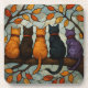 Five Cats on a Tree Branch Stained Glass Style Getränkeuntersetzer