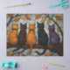 Five Cats on a Tree Branch Stained Glass Style Seidenpapier