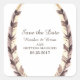 Schick und modern Feathered Border Save the Date Stickers mit einem stilvollen Aquarell aussehen braun und beige bunte Federrahmen. Diese eleganten und einzigartigen Save the Date Aufkleber lassen sich leicht mit Ihren Hochzeitsdetails abstimmen. Klicken Sie für weitere Anpassungsoptionen auf die Schaltfläche Anpassen.
