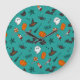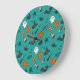 Flach-Style Halloween türkisfarbenes Muster. Große Wanduhr