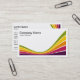 Eine Visitenkartenvorlage mit einem attraktiven Farbband wie Motiv aus fünf Bändern in attraktiver Farbpalette. Das gleiche Motiv wird auch auf der Rückseite der Karte verwendet, außer es ist vertikal und rechts angeordnet, um den Text, der auf der links angeordnet ist, auszubalancieren.Firmenname und Geschäftstyp auf der Vorderseite der Karte. Name, Anschrift, Telefonie, E-Mail und Web-Adresse sind auf der Rückseite angeordnet.