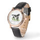 Uhr, Klassische Damenuhr mit schwarzen Lederarmband
