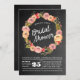 Die beliebte, trendige Hochzeit rustikale Blumenzwiebelkarte lädt ein. Rustikal mit einem Vintagen Sommer/Frühling Gefühl. Die wunderschönen Blume in Rosa und Orange (Rose) bilden ein wunderschönes, kreisförmiges, kreisförmiges Kraut. Brautparty kursive/Skripttypografie im hübschen Blumenkranz. Eine Pip Pip Hooray Design Vorlage. Füllen Sie einfach die Vorlage mit Ihren eigenen Details hier und jetzt für eine erschwingliche, professionell gedruckte laden Stapel an Ihre Tür liefern! Jede Einladung ist mit einem kostenlosen Umschlag für die passende Größe inbegriffen.