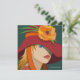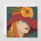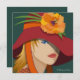 Diese Karte zeigt eine digitale Grafik, die eine junge Frau in einem roten Hut darstellt, mit einer gelben Blume mit einer Biene in der Mitte. Ein Set davon eignet sich als Geschenk für Damen und Herren. Eine einzelne Karte oder ein Set kann mit Ihrer persönlichen Nachricht im Inneren gedruckt werden.