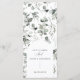Modernes, elegantes Hochzeitsmenü mit einem schlichten, eleganten Design in Eukalyptus und gedämpften Tönen, ideal für eine raffinierte, minimalistische Ästhetik